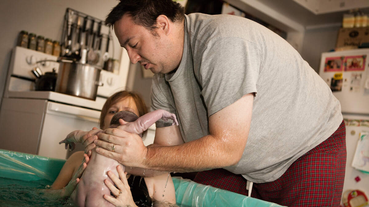 Erin Persia welcomed daughter Amelia Gracelyn in the bathtub of her Blackwood home on Friday after she left the hospital believing her husband Steve would not be able to accompany her during labor, according to her Facebook post.